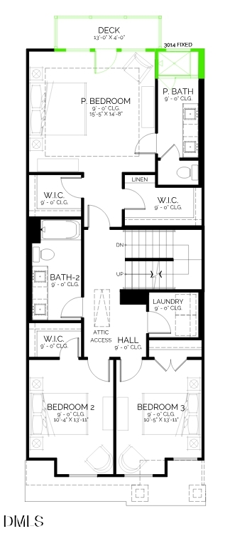 The second floor includes a spacious primary suite with a tray ceiling, two walk-in closets, spa-like bath, and a private walk-out deck, plus two additional bedrooms, a full bath, and laundry room. The third floor offers a large rec room or optional bedroom with a walk-in closet, full bath, and unfinished attic storage.