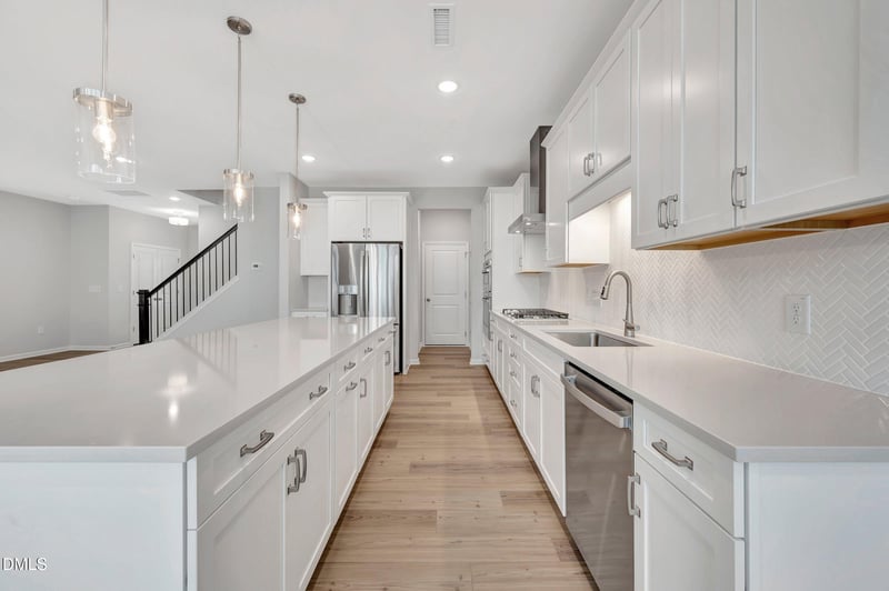 This luxury kitchen has a 9-foot eat-in island, something you will not find in your typical townhome. The dining area is over 14-feet long, so you could make it home to even the largest of farm tables. All of this flows out to a screen porch for the warm North Carolina summer nights.