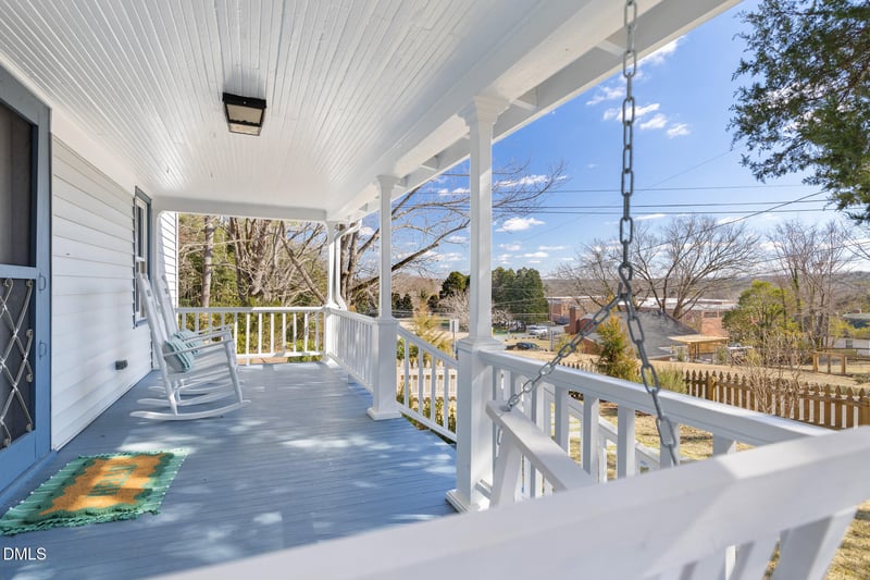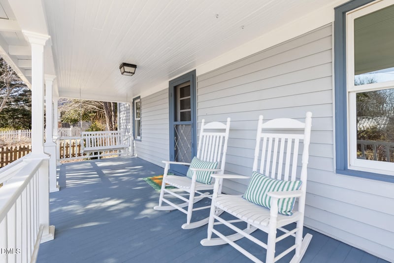 Listing details for 314 Queen St, Hillsborough, NC 27278 : With its carefully preserved historic character and updated amenities throughout, this charming home in the heart of Hillsborough is ready for the next 100 years of memories. Just steps from the landmarks and gathering places that define this community, this home offers an unbeatable location, thoughtful renovations, and a suite of modern amenities to make this property move-in ready. Updates include fresh interior paint, polished hardwoods, new sheet-rock ceiling in the living room and second bedroom, three newly installed ceiling fans, new bathroom vanities, and a brand-new HVAC system to ensure daily comfort. The bright, cheery kitchen has been enhanced with granite countertops, refreshed cabinetry, and a new sink and faucet, and flows into a breakfast bar and spacious dining area to create a welcoming atmosphere for gatherings of friends and family. The split two-bedroom layout includes a front bedroom boasting built-in bookshelves, ample closet space, and access to a secret hideaway-an upstairs nook tucked under the eaves-offering finished living space and additional storage. At the rear of the home, the primary bedroom includes a walk-in closet and en suite bath. Additionally, the home's infrastructure has been modernized along the way, with a new crawlspace vapor barrier; new, reinforced structural supports. A curtain drain channels water safely away from the home. The driveway was rebuilt and finished with gravel, and the landscaping has been completely re-imagined with major tree trimming, new trees lining the drive, fresh lawn and shrub installation, and a slate front walk. Outside you'll find a spacious patio, shed, chicken coop and a large carport. Saving the best for last, a classic wide southern front porch boasting amazing views of Occoneechee mountain and the surrounding ridge-line. Perfect for that morning cup of your favorite brew or celebrating an end of day toast.