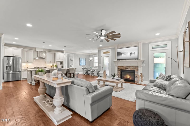 Listing details for 316 Teague St, Wake Forest, NC 27587 : Welcome to 316 Teague Street, a beautifully crafted home by Cambridge Classic Homes, where thoughtful design, quality construction, and everyday functionality come together in this highly desirable split ranch layout in Wake Forest. Designed for the way people truly live, the home offers primary living on the main level, including the owner's suite and two additional bedrooms, creating a layout that is both convenient and flexible. At the heart of the home, the spacious family room features a stunning stone surround gas fireplace and flows seamlessly to the screened porch, creating an ideal setting for both entertaining and quiet evenings at home. The kitchen is equal parts functional and refined, showcasing custom bisque painted cabinetry, granite countertops, a beveled subway tile backsplash, and under-cabinet lighting. An oversized center island with breakfast bar seating anchors the space, while a butler's pantry provides additional prep and storage. Privately tucked away, the owner's suite offers a true retreat with a foyer-style entry, trey ceiling with crown molding, and a light-filled bay window. The spa-inspired bath features a 12x24 brick-laid tile floor, dual granite vanities, a garden tub, a walk-in tiled shower, and a massive walk-in closet with custom shelving. Upstairs, a spacious bonus room, additional bedroom, and full bath provide the perfect setup for guests, a home office, or a private retreat separate from the main living areas. Outdoor living is where this home truly shines. A screened porch opens to an oversized patio, all overlooking mature landscaping that offers a rare sense of privacy and a peaceful backdrop for relaxing or entertaining. Additional highlights include plantation shutters throughout and a rare three-car garage, offering exceptional flexibility for storage and everyday convenience. Built with the craftsmanship and attention to detail that Cambridge Classic Homes is known for, this home delivers a seamless blend of comfort, function, and timeless design.
