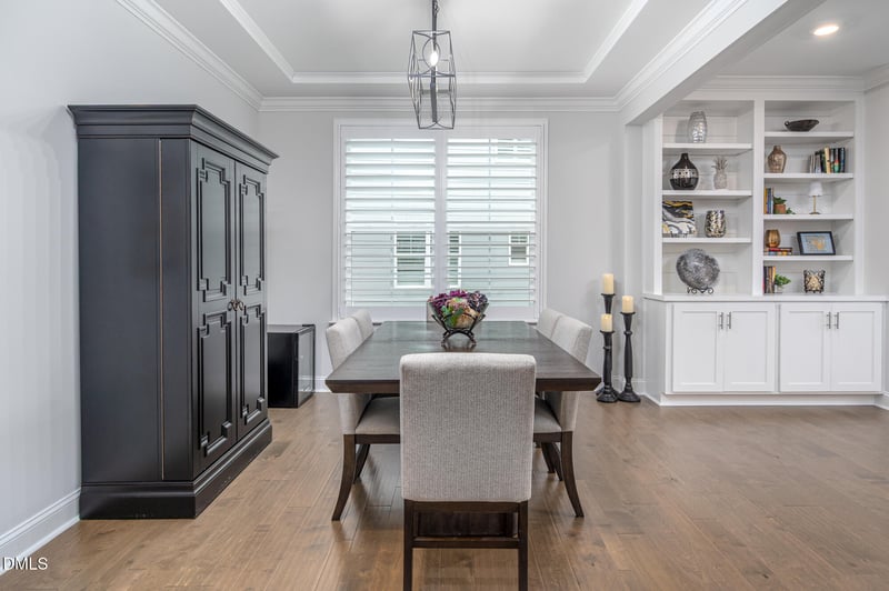 Listing details for 319 High Woods Rg, Chapel Hill, NC 27517 : Nature, Comfort, and Space...All in One Beautiful Package Tucked in the gated, amenity-rich community of Legacy at Jordan Lake, 319 High Woods Ridge offers the perfect blend of elegance and everyday ease. This move-in-ready home backs to peaceful wooded views where deer, turkeys, and bluebirds make regular appearances, best enjoyed from the screened porch or sunny back deck. Inside, you'll find a pristine interior with thoughtful upgrades throughout. The main floor features a guest suite, formal dining, and a light-filled open layout anchored by a chef's kitchen with an oversized island that easily seats six. Custom plantation shutters, built-ins, and hardwood floors add warmth and character to the inviting family room and dining area. Upstairs, the spacious primary suite includes two large walk-in closets with Lifetime Custom Closets, plus three additional bedrooms, two full baths, and a versatile loft perfect for movie nights or homework zones. The finished walkout basement adds even more flexible living space with another bedroom, a full bath, and a generous family room that opens to a large patio and backyard. All this on a ⅓-acre homesite with a 2-car garage, just steps from world-class community amenities including a par-3 golf course, pool, tennis and pickleball courts, fitness center, playground, and miles of wooded trails. Whether you're hosting, relaxing, or exploring, this home delivers the lifestyle you've been looking for.