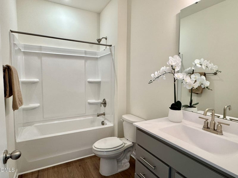 The spacious living room is made for relaxing, complete with a custom-trimmed electric fireplace that adds a touch of modern elegance. And when it's time to unwind, retreat to the large Primary bedroom with trey ceilings, a walk-in closet, and the same stylish vinyl plank flooring. The en-suite bath is pure luxury, with a soaking tub, a semi-frameless walk-in shower, and a separate water closet for extra privacy.