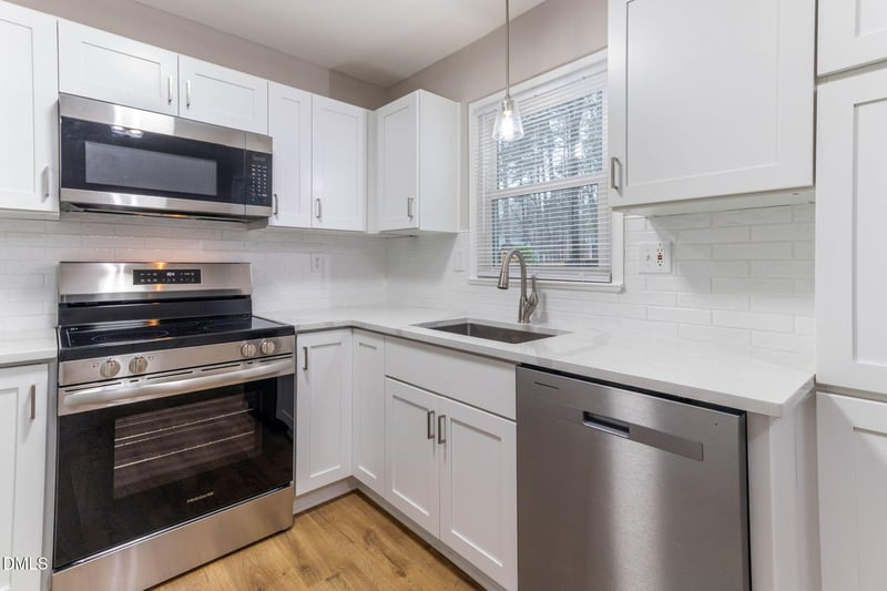 Listing details for 320 Penn Oak Cir, Raleigh, NC 27615 : This charming & modernized North Raleigh home hits every category; price, condition and location! Refreshed and turn key - Inside you'll find all new kitchen w/white shaker cabinets, quartz countertops, new stainless flat-top stove/microwave and dishwasher. New wide plank LVP flooring throughout the main level living areas, hall and bedrooms transform the spaces, new carpet on the stairs and lower level bedrooms. Complete interior repaint, light fixtures replaced and new window blinds. Both bathrooms have new large format tile floors, new vanities, faucets and lighting. Exterior highlights include a NEW roof, new gutters, ALL windows replaced w/vinyl double pane, and exterior has been repainted and repaired. All updates completed in 2026. The location that cannot be beat. Anchored in the heart of North Raleigh, Mine Valley offers incredible walking (most all on sidewalks), biking or short drives to most all you need - ½ mile walk to shopping/dining/Starbucks at Celebration @ Six Forks, less than one mile to Solas Coffee, prime dining and grocery options at Greystone Village shopping center and a 5 minute walk to Mine Creek Greenway trailhead. Less than a 10 minute drive to North Hills and 4 minutes to Whole Foods. This home is offered at a highly approachable price point. It represents a prime opportunity for a buyer looking to establish a home in a central location that will become more coveted over time. Truly an unbeatable value for the area.