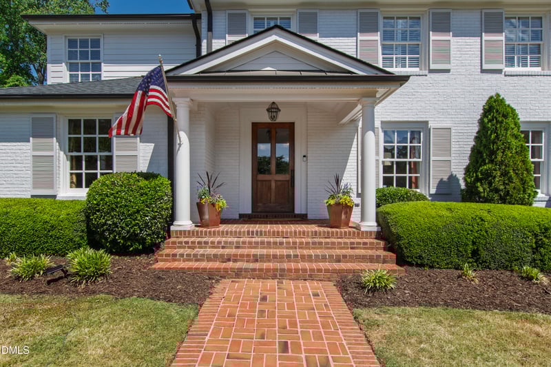 The backyard is designed for both entertaining and enjoyment, featuring a beautiful brick patio, built-in grill, wood-burning brick fireplace, and a playground area--all surrounded by privacy. A circular driveway adds convenience and ample parking, completing this exceptional property in one of Raleigh's most coveted neighborhoods.