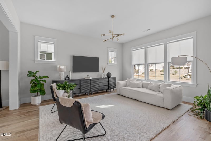 Listing details for 3305 Mission Olive Pl, New Hill, NC 27562 : Immaculately Maintained Home with Over $21,000 in Upgrades. This beautifully maintained home features gleaming hardwood floors, abundant windows, and soaring ceilings that fill the open main level with natural light and an elegant, welcoming atmosphere, perfect for both relaxing and entertaining. The spacious kitchen is a true centerpiece, highlighted by a stunning wall of full-height subway tile and ceiling-height cabinetry offering abundant storage. Additional features include a gas range with vented hood, stainless steel appliances, quartz countertops, and space for either a dining table or center island. The family room, dining area, and kitchen flow seamlessly together, creating a flexible space designed to suit your lifestyle. A laundry room with convenient drop zone at the back door, powder room, and pantry complete the main floor. Upstairs, a soothing color palette continues throughout. The elegant owner's suite is located at the front of the home and features bright windows, a walk-in closet, and access to a private balcony. The spa-inspired ensuite bath includes dual vanities, a private water closet, and a glass-enclosed tile shower. Two additional bedrooms and a shared hall bath complete the upper level. The rear-facing detached garage with epoxy flooring and storage offers alley access and includes an exterior door leading to a private fenced backyard and keypad entry. Enjoy multiple outdoor living options with a covered front porch, private balcony, and fenced backyard with space for a fire feature and cozy seating. Residents enjoy close proximity to Olive Ridge amenities, including a clubhouse, pool, covered play area, fire pits with seating, and picnic tables. Ideally located between Jordan Lake, Apex, and Holly Springs, and just 2 miles from US-1, providing easy access to top employers, recreation, shopping, restaurants, a movie theater, and more.