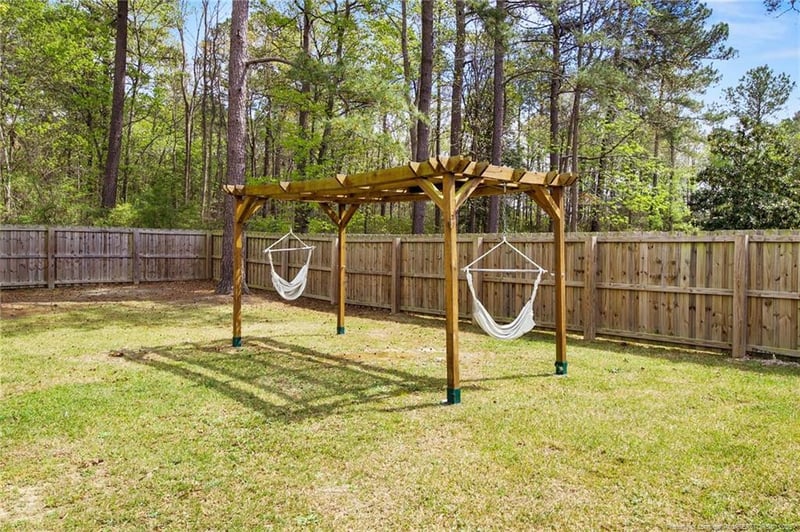 Listing details for 3365 Fork Ln, Hope Mills, NC 28348 : Welcome home to this beautifully situated property on a full acre of land, offering space, privacy, and thoughtful features both inside and out — plus the added benefit of solar panels for energy efficiency and water filtration for peace of mind.Step inside to find a versatile flex room just off the entrance, perfect for a formal dining area, home office, or additional sitting space. The living room is filled with natural light and anchored by a cozy gas fireplace, creating a warm and inviting atmosphere for everyday living. The kitchen features granite countertops and all the essentials, along with an eat-in dining area that overlooks the backyard — making it easy to enjoy peaceful views while you cook or gather for meals. Designed with privacy in mind, the primary suite is located on one side of the home, separate from the remaining bedrooms. The primary bathroom includes dual vanities, a relaxing garden tub, and a walk-in closet. Two additional bedrooms and a full bathroom are positioned on the opposite side, offering a functional split-bedroom layout.Step outside to your fully fenced backyard with a privacy fence, where you’ll find a patio, pergola, and firepit — the perfect setup for entertaining, relaxing evenings, or enjoying your own private retreat.With a full acre of land, energy-saving solar panels, and a well-designed layout, this home offers the space and features you're looking for. Welcome Home!Welcome Home! AGENTS-not a member of MLS? Call Showing Time for access/disclosures.
