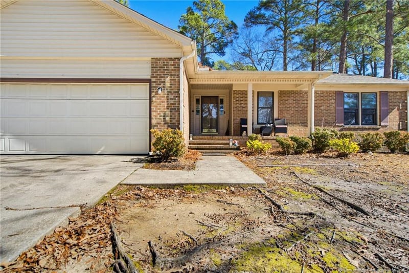 Listing details for 338 Conifer Dr, Fayetteville, NC 28314 : Great opportunity to own this spacious brick ranch featuring 4 bedrooms and 2 full baths in a thoughtfully designed layout. A welcoming foyer opens into sunken den with a cozy wood-burning fireplace, creating the perfect gathering space. The home flows seamlessly into the kitchen, complete with a breakfast nook and an additional dining area—ideal for both everyday living and entertaining. The primary suite offers comfort and functionality with a walk-in closet, walk-in shower, private sink, and an additional vanity space for added convenience. Laundry is centrally located near all bedrooms for easy access. Enjoy outdoor living in the fully fenced backyard featuring a covered patio—perfect for relaxing evenings, playtime, and hosting guests. An outdoor storage shed adds extra space for tools and equipment. The attached two-car garage provides ample parking and storage. Conveniently located less than 20 minutes from Fort Bragg, with abundant shopping and dining options nearby, this home blends comfort, space, and location. Opportunity is knocking—schedule your tour today!