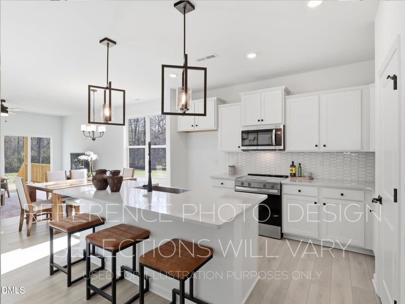 Listing details for 3404 Mackenzie Ln, Zebulon, NC 27597 : Welcome to the charming Habersham II plan, located in the Rosinburg Glen subdivision built by Great Southern Homes! Nestled on a generous 1.55-acre homesite with serene, wooded views, this story and a half home offers the perfect blend of comfort, style, and functionality. Step inside to find upgraded LVP flooring throughout the main living areas, setting the tone for a warm and elegant interior. The gourmet kitchen is a true showstopper, featuring quartz countertops, elegant white picket mosaic tile backsplash, custom-painted cabinets, and a painted island with barstool seating--perfect for casual dining or entertaining. The kitchen flows seamlessly into the spacious dining area and open-concept family room with an electric fireplace , and easy access to the rear covered porch--ideal for indoor-outdoor living and entertaining.The main-level owner's suite is a peaceful retreat, featuring plush carpeting and two generous walk-in closets. Also on the main floor are a second bedroom and a private study, perfect for remote work or guests.Upstairs, you'll find a versatile bonus room, third bedroom, and a full bathroom--perfect for a guest suite, hideaway, or hobby space. With its thoughtfully designed layout and upgraded finishes, this home truly offers comfortable living and stylish entertaining--all on a peaceful, wooded homesite in one of the area's most exciting new communities.