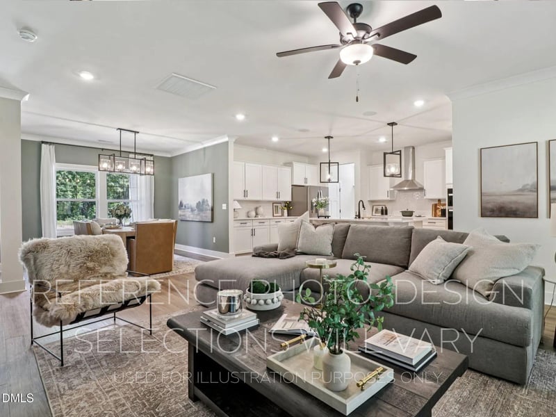 Listing details for 3413 Mackenzie Ln, Zebulon, NC 27597 : The newly designed Wisteria II Plan, located in the charming Rosinburg Glen by Great Southern Homes! This highly sought-after ranch-style home is nestled on a generous 1 acre cul-de-sac homesite, offering plenty of space and privacy. Inside, you'll find upgraded LVP flooring and crown molding throughout, adding a touch of elegance to every room. The kitchen is a standout, featuring beautiful ''Lagoon'' quartz countertops, custom Elkins White-painted extended cabinetry, a stylish picket mosaic tile backsplash, and a spacious center island. With stainless steel appliances, including a smooth-top range, microwave, and dishwasher, the kitchen also offers a large walk-in pantry for extra storage. Adjacent to the kitchen, you'll find a separate dining area, perfect for enjoying meals. The owner's suite is a serene retreat, complete with LVP flooring and a generous walk-in closet. The owner's bath is equally luxurious, offering a dual vanity in ''Elkins White'' with quartz countertops, a walk-in tiled shower, and a separate soaking tub for ultimate relaxation. The open-concept family room is designed for entertaining, featuring a modern linear fireplace and easy access to the rear-covered patio.