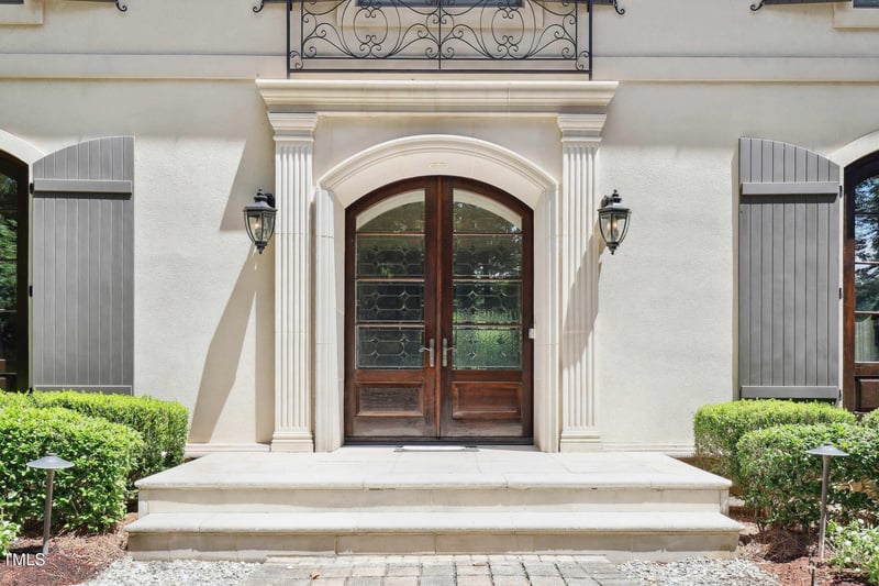 Listing details for 3417 Birk Bluff Ct, Cary, NC 27518 : Welcome to 3417 Birk Bluff Court, a stunning European-style estate nestled on 1.43 beautifully landscaped acres in the prestigious Birklands community of Cary, outside of city limits. A Parade of Homes favorite, also known to many locally as the ''Concrete Home'', it provides several advantages such as soundproofing, fire resistance, and energy efficiency due to its reinforced concrete construction. With over 9,000 square feet of elegant living space, featuring 5 bedrooms, 6 full baths, and 3 half baths, it balances space and functionality. The first-floor primary suite includes heated floors, a soaking tub, and separate shower. Soaring ceilings, heated tile floors, and tall entryways enhance the main level, which also includes a chef's kitchen with gas cooktop, range hood, built-in espresso machine, and bar area flowing into the dining room. Multiple living spaces offer comfort and warmth, including fireplaces in the den and primary suite. Double utility rooms are conveniently located on both the main and upper levels.