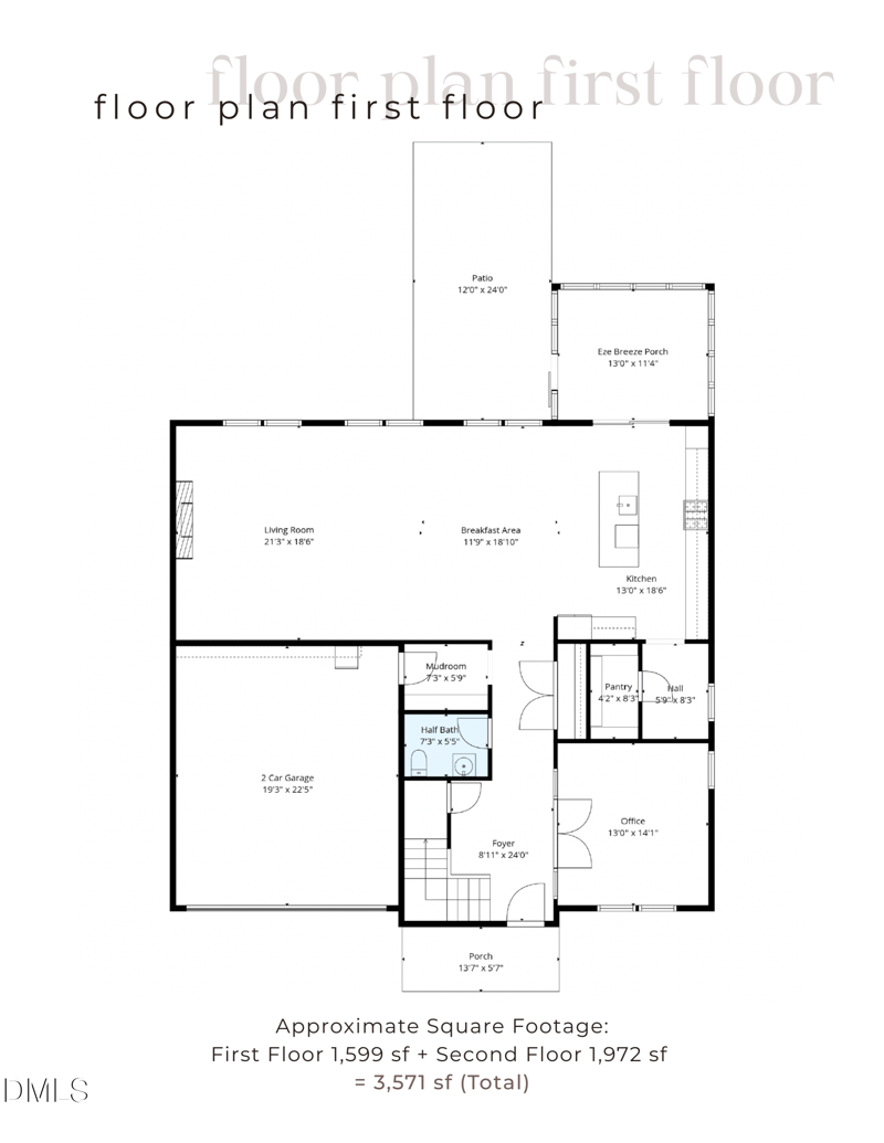 The main level features a striking two-story foyer, durable laminate flooring, a private office with French doors, and an open-concept living, dining, and kitchen layout designed for everyday living and effortless entertaining. The kitchen serves as the heart of the home with quartz countertops, a large center island, gas cooktop, wall oven and microwave, range hood, tile backsplash, abundant cabinetry, a walk-in pantry, and a dedicated coffee or beverage station.