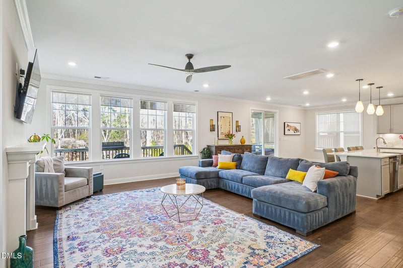 Inside, the home is filled with beautiful natural light throughout the day. The open kitchen with a large kitchen island and living area provide an inviting central space for gathering, whether hosting friends or enjoying a quiet evening at home. The eat-in kitchen can comfortably fit a large table if desired, and a separate formal dining room offers additional space for entertaining or flexible use. The floor plan is designed to adapt over time, allowing the living and dining areas to evolve to suit your needs.
