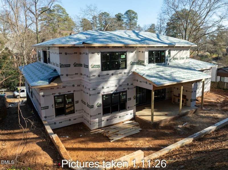 Listing details for 3521 Brook Dr, Raleigh, NC 27609 : Experience modern luxury in the heart of North Hills with this stunning new construction home, where sophisticated design meets functional elegance. The residence makes a striking first impression with a meticulously crafted exterior featuring fiber cement siding, brick veneer, and a modern eight-light grid front door. Outdoor living is elevated by patterned bluestone flagstone on both the front and rear porches, complemented by a beautiful tongue-and-groove ceiling on the front entry. Sleek exterior windows and a contemporary flush-panel garage door complete the home's polished curb appeal. The interior is defined by an open-concept layout showcased by gleaming hardwood floors and high-end architectural details throughout. At the heart of the home, the gourmet kitchen is a chef's dream, featuring quartz countertops and backsplashes, custom cabinetry, and a spacious central island. For ultimate organization, a dedicated scullery provides additional hutch storage, base cabinets, and shelving. The kitchen flows seamlessly into the family room, where a 48-inch linear gas fireplace with a wrap-around tile surround serves as a stunning focal point, flanked by custom built-ins and floating shelves. A formal dining room and a welcoming foyer with a designer accent wall and iron-baluster staircase provide elegant spaces for entertaining. Versatility defines the living spaces, beginning with a main-level flex room and a private study designed with a sophisticated, monochromatic aesthetic. The upper level continues to impress with a spacious playroom featuring a quartz backsplash and ledge, offering a perfect retreat for recreation. The primary suite serves as a serene sanctuary, boasting a spa-like bath with designer tile selections on the floors and walls. Every corner of the home is thoughtfully planned, from the functional mudroom with custom cabinetry and a natural stone or wood bench seat to the laundry room equipped with a convenient folding table. Quality craftsmanship is evident in every detail, including two-panel interior doors, contemporary hardware, and high-efficiency features built for modern energy compliance. This designer-curated home offers a rare opportunity to enjoy a new build with premium finishes in one of Raleigh's most sought-after neighborhoods, just moments from the premier shopping, dining, and entertainment of North Hills.