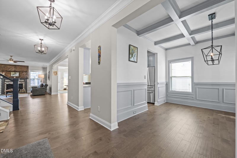Listing details for 3528 Jones Lake Rd, Fuquay Varina, NC 27526 : Welcome home to South Lakes, one of Fuquay-Varina's most popular communities with a pool, walking trails, sidewalks, playground, and scenic lake. This north-facing home offers a comfortable, light-filled layout with a dedicated dining room featuring a coffered ceiling and wainscoting. The kitchen includes shaker cabinets, granite countertops, tile backsplash, stainless steel appliances, a gas range, and pantry. The breakfast area opens to a south-facing covered sunroom, perfect for morning coffee, relaxing, or a home office. The living room features engineered hardwood floors and a gas fireplace. The first floor primary suite includes a tray ceiling, dual vanities, walk-in shower, soaking tub, and walk-in closet. Upstairs offers an oversized loft, three additional bedrooms with walk-in closets, and a full bath. The flat fenced-in backyard features a pergola, grilling area with a natural gas line, and fresh landscaping, ideal for everyday living and entertaining