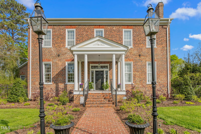 Listing details for 3542 Bason Rd, Mebane, NC 27302 : The Griffis-Patton House, a breathtaking Greek Revival estate built in 1839-1840, sits on over 10 picturesque acres overlooking Mebane-Graham Lake. As one of Alamance County's first brick homes, this nationally registered historic property seamlessly blends timeless elegance with modern comforts. The spacious grounds are perfect for horses and agriculture. The grand entry welcomes you into a meticulously restored interior featuring original plaster walls, beadboard ceilings, and exposed brick. The home boasts multiple living areas, including a library, a family room with vaulted wood ceilings, and a dining room with a gas fireplace. The chef's kitchen is a masterpiece, featuring exposed beams, granite countertops, and a Blue-Star gas stove. The expansive primary suite offers a spa-like bath and private patio leading to a 36,000-gallon pool. The beautifully landscaped grounds include formal gardens, a barn, a well-house, and a gazebo. Just minutes from major cities, this rare property offers a once-in-a-lifetime chance to own a piece of North Carolina history.