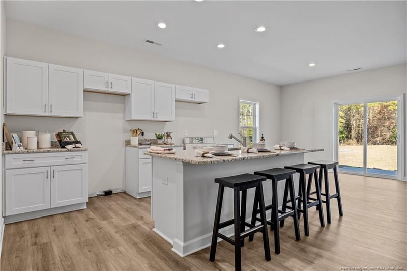 Listing details for 355 Hookbill Ln, Lillington, NC 27546 : $10,000 Buyer incentive using the preferred lender, must close by May 31st! You'll love the Davie, this thoughtfully designed ranch-style home offers easy one-level living with smart features and flexible spaces for everyday comfort. A welcoming entryway with a coat closet opens into a spacious great room, perfect for gathering and relaxing. The kitchen blends style and function with shaker cabinets, granite countertops, stainless steel appliances, a center island with sink, and a pantry, all flowing seamlessly into the dining area with backyard views and access to a covered porch and grill patio—perfect for indoor-outdoor living. The private primary suite provides a peaceful retreat with an en-suite bath featuring dual sink vanity, walk-in shower, linen closet, and walk-in closet. Two additional bedrooms share a full hall bath, perfect for guests or family. A separate laundry room with washer/dryer connections and a linen closet adds convenience. Exterior highlights include low-maintenance vinyl siding, dimensional roof shingles, smart keypad entry, and a 1-car garage. Additional features include fiber optic internet availability, Energy Plus certification, and a 1-2-10 builder in-house warranty. Duck's Landing is a charming community with spacious lots in the peaceful countryside of Lillington, NC, featuring planned amenities like a tot lot, dog park, and picnic area, all with convenient access to Lillington, Fort Bragg(20 min.), Raleigh, and Fayetteville.