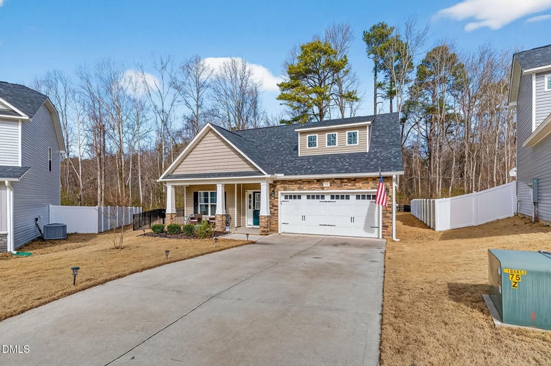 Listing details for 36 Kevin Troy Ct, Angier, NC 27501 : Tucked at the end of a quiet cul-de-sac in the heart of Angier, this thoughtfully upgraded home offers comfort, flexibility, and truly move-in-ready ease. The kitchen anchors the main living space with an upgraded gas range, updated dishwasher, generous prep space, and seamless flow into the dining and living areas. Built-in bookcases frame the fireplace, creating a warm, inviting setting for both everyday life and easy entertaining. The main-level primary suite was designed with intention, featuring a beautifully updated bath with a wheelchair-accessible shower and a spacious walk-in closet. It is a layout that offers both convenience and long-term flexibility without sacrificing style. Upstairs, two oversized bedrooms with walk-in closets provide room to spread out, along with a full bath featuring a double vanity. The separation between the primary suite and secondary bedrooms adds privacy, while the overall layout maintains an open, connected feel throughout the home. Step outside to a serene, fenced backyard with black estate-style fencing and a covered patio that is perfect for morning coffee or relaxed evening gatherings. The setting feels private and peaceful, yet you are just minutes from downtown Angier's shops and restaurants, Jack Marley Park, and a short drive to Fuquay-Varina, WakeMed's new hospital campus, and major commuter routes to Raleigh and RDU. Accessibility, thoughtful upgrades, privacy, and location all come together here in this practically new JSJ built home.