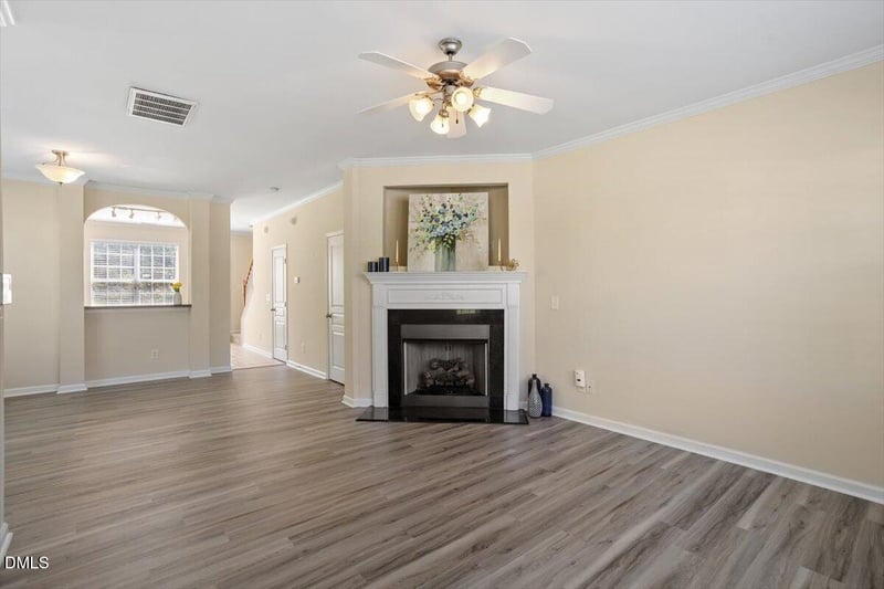 Listing details for 3601 Ramblewood Ave, Durham, NC 27713 : This charming end-unit townhome in popular Hope Valley Farms is flooded with sunshine thanks to an abundance of extra windows that keep the entire space bright and cheerful. The welcoming main level is designed for both cozy evenings curled up with a good book by the gas fireplace and effortless entertaining with an open flow, a dedicated dining area, and an elegant serving archway into the kitchen. Cooking is a joy in the spacious kitchen, which offers plentiful cabinetry and counter space, a pantry, and stainless-steel appliances that convey with the home. Neutral paint and modern LVP flooring provide the perfect backdrop for your personal style, while high ceilings add an airy, sophisticated touch. Upstairs, you'll find two generously sized bedroom, the primary suite offers two walk-in closets and both feature private en suite bathrooms and convenient access to the laundry area. With a new roof installed in 2024, the exterior also offers a private patio and a lush side yard, and is just a stone's throw from the new high-tech elementary school. Living here means easy access to local shopping and savory restaurants, quick jaunts to Duke, UNC, and RTP, and enjoying miles of wooded trails, sidewalk strolls, bike lanes, and an optional YMCA pool membership, all perfectly positioned within minutes of your front door.