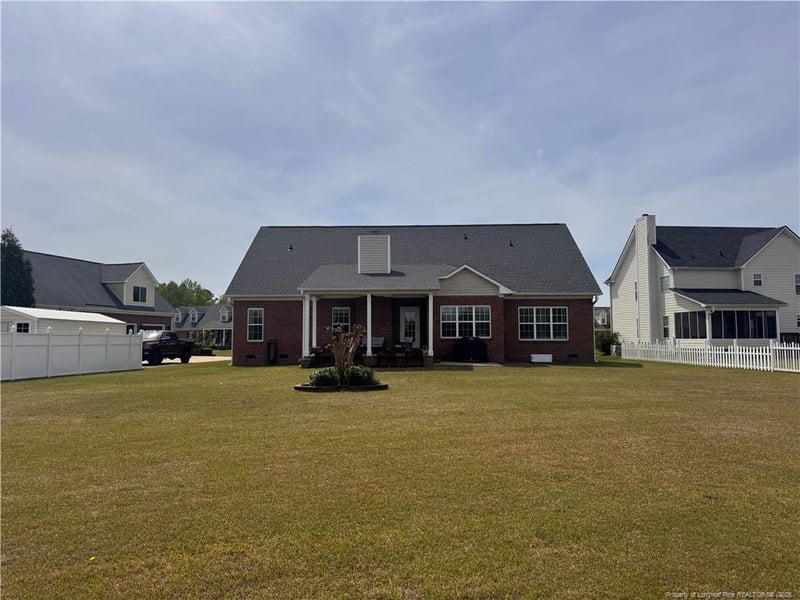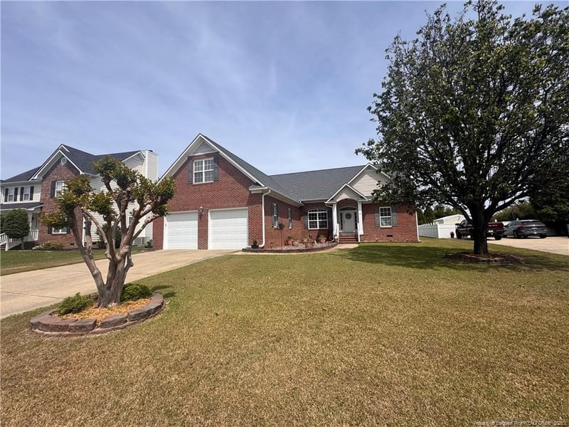 Listing details for 3614 Sunchase Dr, Fayetteville, NC 28306 : There's just something about a brick home! Inside doesn't disappoint... with 4 bedrooms, 3.5 baths it offers a functional layout and spacious living areas on a just under half-acre lot. The entry welcomes you with hardwood flooring and leads into an open living room featuring a vaulted ceiling and cozy wood-burning fireplace or the open concept formal dining. The kitchen has ample cabinet space and an eat-in dining area ideal for both everyday living and entertaining. A convenient half bath and laundry room are located on the main level. The split floor plan provides privacy with a spacious primary suite featuring a large bedroom, walk-in closet, and en-suite bath complete with dual vanities, soaking tub, separate shower, and water closet. On the opposite side of the home, you’ll find two additional bedrooms, a full bath, and linen closet. Upstairs includes a large bonus room with a full bathroom offering flexible space for a guest suite, office, or media room. Enjoy outdoor living with a huge covered patio equipped with ceiling fans... perfect for relaxing or entertaining (patio furniture can remain). The expansive backyard offers plenty of room to make it your own. Additional features include a large garage and generous lot size. The interior has fresh new paint! Don't miss this opportunity to make this great home in the Jack Britt school district yours.