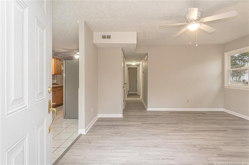Listing details for 3656 Metric Dr, Hope Mills, NC 28348 : Move-in ready 3BR/1.5BA home at 3656 Metric Dr in Hope Mills. Fresh paint throughout with luxury vinyl plank flooring in common areas and baths, plus new carpet in all bedrooms. Updates include a new tub/shower insert, updated vanities, some new interior doors, and vinyl windows. Features a fenced backyard, covered carport, and convenient location near the Hope Mills Trail, shopping, and dining. Great opportunity for comfortable, low-maintenance living.