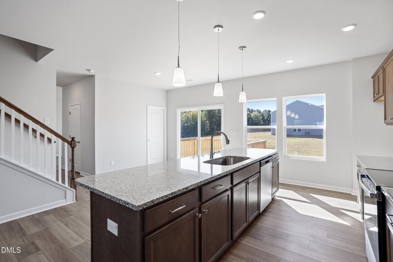This 4-bedroom, 2.5-bath home is designed for both everyday comfort and entertaining. The open-concept main level connects the family room and eat-in kitchen, centered around a large island with granite countertops, stainless steel appliances, and bar seating.
