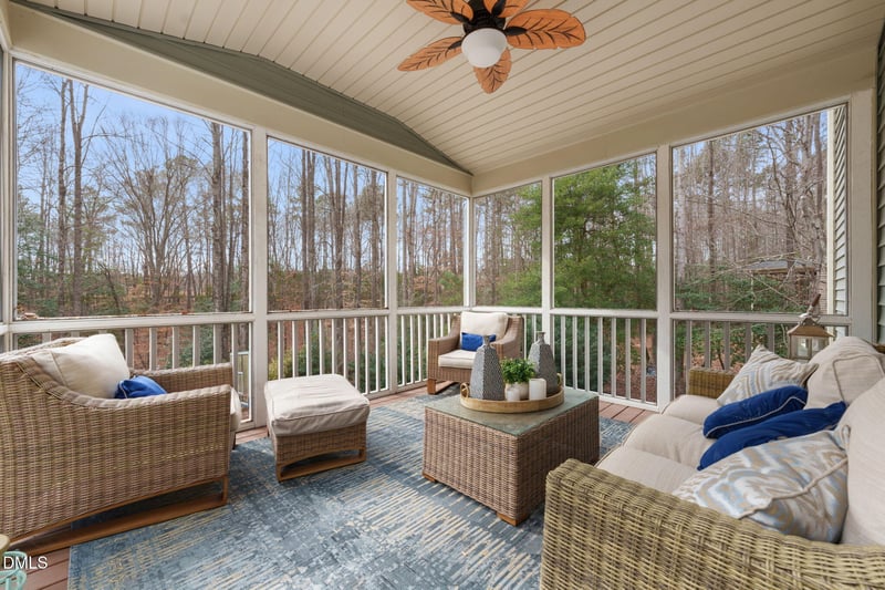 Listing details for 369 Ainsley Ct, Clayton, NC 27527 : Private 1+ acre wooded lot, 3-car garage, and over 3,400 sq ft of flexible living space--this one checks all the boxes. Enjoy outdoor living with a screened porch, grilling deck, patio, and fire pit area. Inside, hardwood floors, a spacious family room with gas fireplace, and an open kitchen/breakfast area make everyday living and entertaining easy. With 5+ bedrooms and 4 full baths, there's room for everyone--including a main-floor guest suite or office. Upstairs features a large primary suite, loft/media space, and secondary bedrooms with bonus sitting areas.Energy-efficient solar panels add long-term savings to this already impressive home.