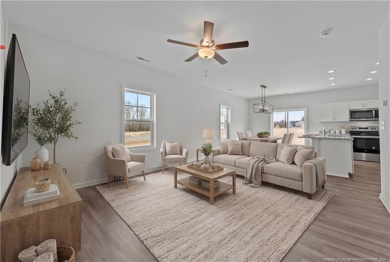 Listing details for 372 Hookbill Ln, Lillington, NC 27546 : $10,000 incentive to Use-As-You-Choose using the preferred lender-must close by May 31, 2026! Welcome to the Hinton! This home is on a spacious 0.51-acre corner lot, this home welcomes you with a charming covered front porch & a bright, open great room. The kitchen granite countertops, large island with sink, SS appliances & a walk-in pantry. From the dining space, step out onto the grill patio—perfect for outdoor dining or relaxing. Upstairs, all bedrooms are thoughtfully placed for privacy & comfort. A generous loft offers flexible space for a media room, playroom, or study.The primary suite features a tray ceiling & an en-suite bath with dual vanity, walk-in shower, linen closet, and access to the spacious WIC. Two additional bedrooms share a full hall bath with a vanity & tub/shower combo.Exterior highlights include low-maintenance vinyl siding, smart keypad entry, and a 1-car garage. Additional features include fiber optic internet availability, Energy Plus certification, and a 1-2-10 builder in-house warranty. Welcome to Duck's Landing—a charming community in the peaceful countryside of Lillington, NC, featuring planned amenities like a tot lot, dog park, and picnic area, all with convenient access to Lillington, Fort Bragg(20 min.), Raleigh, and Fayetteville.