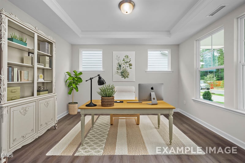 Listing details for 3843 Erickson Ct, New Hill, NC 27562 : Welcome to this stunning three-story residence, a masterpiece of design and functionality situated on a sprawling half-acre lot. This expansive 6-bedroom, 5.5-bathroom ASPEN C offers the perfect blend of luxury and comfort, anchored by a gourmet kitchen that serves as the heart of the home. The main level features a sophisticated private study for remote work and a convenient guest suite, ideal for multi-generational living or overnight visitors.