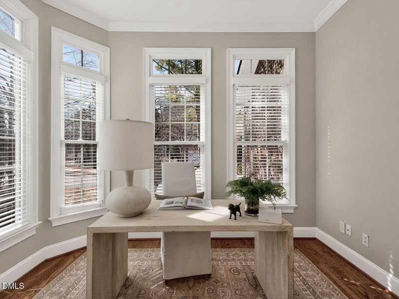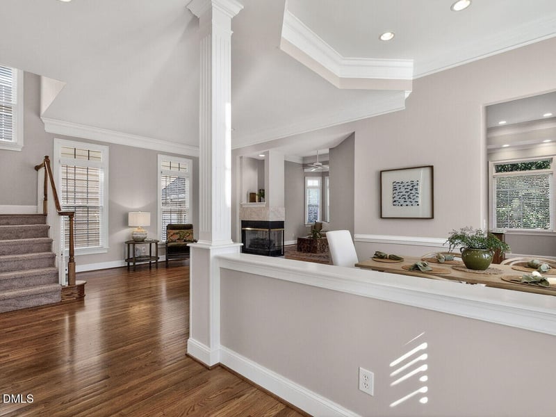 Listing details for 3900 Bentley Bridge Rd, Raleigh, NC 27612 : Beautiful home with refurbished hardwoods, fresh paint and new carpet. New roof-'24, New HVAC-'25. Convenient to Rex Hospital, RTP, RDU Airport and I-40. Massive primary suite with sitting room and fireplace, huge dressing room/closet. High ceilings, trey ceilings, 2 story rooms, lots of windows, transoms and blinds on all windows. Home lives like SFH with no shared walls, only joined by exterior storage shed. Private brick terrace. Great front and side yards