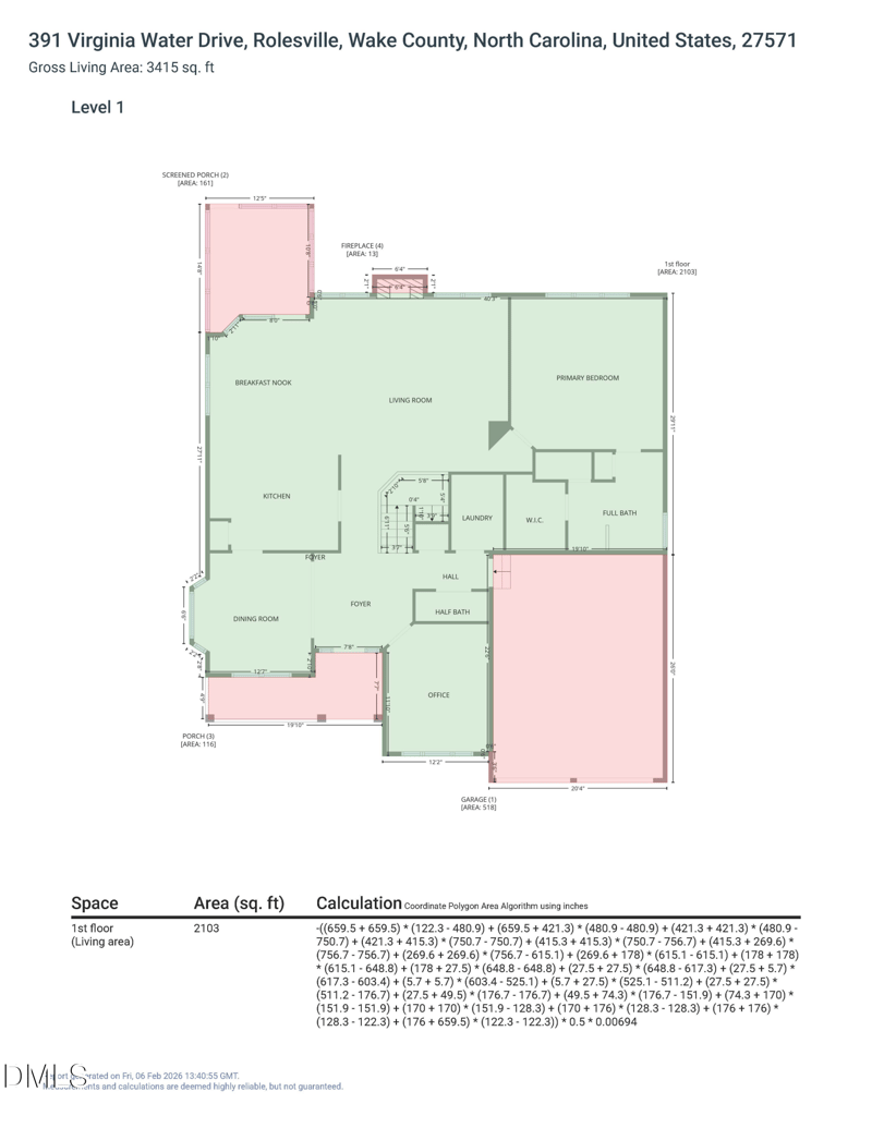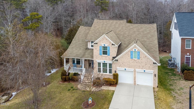 Listing details for 391 Virginia Water Dr, Rolesville, NC 27571 : Rare private retreat in the heart of Rolesville! This one-of-a-kind home sits at the end of a wide street and uniquely faces mature trees and wooded natural space on two sides, offering exceptional privacy rarely found in a neighborhood setting. This sophisticated home design boasts all wood floors featuring 5 bedrooms and 3.5 bathrooms. The expansive owner's suite on the main level offers a soaring 25 foot ceiling plus a spacious en-suite bath and walk-in closet. Upstairs you'll find 4 additional bedrooms, including an added flex room (unpermitted.) The elegant curved Juliette staircase has a discrete stair lift providing enhanced accessibility between levels. An upstairs bathroom also includes a walk-in Whole Body Hydrotherapy RevitaJet™ spa bathtub. The heart of this open concept home is the large gourmet kitchen, featuring stainless double ovens, microwave, glass cooktop, abundant cabinetry with soft-close drawers, and a 10 foot curved granite countertop bar for additional seating. A bright casual dining area overlooks the screened-in porch and yards, enhanced by windows that fill the space with natural light. The adjacent two story great room has soaring picture windows overlooking nature's lush woods, featuring a cozy gas fireplace, creating a warm and inviting space for everyday living and entertaining. The main floor also includes a dedicated home office, formal dining room, half bath and a versatile laundry center/butler's pantry, with a second dishwasher that adds both function and flexibility. Step out onto the covered screened-in back porch, where privacy, serenity and nature take center stage. From the base of the porch stairs, a private walking path leads down a gentle slope to a tranquil babbling brook approximately 50 feet behind the tree line, offering a rare peaceful retreat-like setting. The professionally maintained lawn—cared for since the home's inception—features a full sprinkler system, enhancing the home's beautiful landscaping and curb appeal.. An added bonus is the unique 7 foot tall unfinished walk-in storage/workshop area situated beneath the kitchen area accessible from the side yard. Resort style community amenities for you to enjoy include tennis, pickleball, and volleyball courts, a children's playground and a junior Olympic size swimming pool with charcoal grilling stations, a splashing fountain and kitchen access. Beautifully landscaped and positioned on an exceptionally private end lot, this unique home offers a special blend of space, comfort, accessibility features, and natural surroundings—while still being conveniently located near everything Rolesville's small-town charm has to offer.