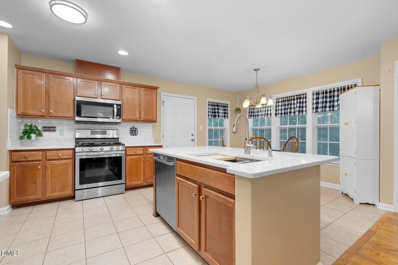 Listing details for 393 Santa Gertrudis, Clayton, NC 27520 : Welcome to this beautifully maintained home nestled on a generous lot in Clayton! This home offers 4 spacious bedrooms plus a versatile bonus room and 2.5 baths, with a layout designed for both everyday living and entertaining. Enjoy the flexibility of formal dining and a cozy eat-in kitchen, along with a dedicated office space downstairs--perfect for working from home. The kitchen is a true highlight, featuring upgraded quartz countertops, a large single-basin sink, stainless steel appliances, a gas stove, and a center island for extra prep and gathering space. Set on a generous 1.55-acre lot, this property backs up to peaceful woods, offering added privacy and a serene backdrop. The yard also features mature fruit trees, including two apple trees, a cherry tree, and a peach tree--perfect for enjoying fresh, homegrown fruit right at home. Relax or entertain on the back deck while taking in the natural surroundings. Best of all--NO HOA! Don't miss the opportunity to own this spacious home with room to spread out, both inside and out.