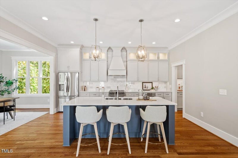 Listing details for 3932 Old Chapel Hill Rd, Durham, NC 27707 : Luxury Living in Prime Southwest Durham - Stunning New Construction Discover elevated living at 3932 Old Chapel Hill Road — a beautifully crafted new construction home nestled in the heart of Southwest Durham. Designed with discerning tastes in mind, this residence blends timeless elegance with modern convenience, all in an unbeatable location. Inside, site-finished hardwood floors, extensive custom trim, and designer tilework set the tone for quality and craftsmanship. The open-concept floor plan flows seamlessly into the heart of the home — a gourmet kitchen with custom cabinetry, upscale appliances, and a spacious butler's pantry — perfect for both everyday living and entertaining. The expansive primary suite is a true retreat, featuring custom walk-in closets and a spa-inspired bath with an enormous fully tiled walk-in shower, high-end finishes, and thoughtfully designed touches throughout. Host guests with ease thanks to the private lower-level guest suite and flexible bonus room with exterior access — ideal for a media room, home gym, or playroom. Enjoy indoor-outdoor living from the elevated balcony, ideal for relaxing or entertaining al fresco. Additional features include a garage with an electric vehicle charging station and beautifully appointed entertaining spaces. All this just minutes to Duke University, Downtown Durham, Chapel Hill, I-40, and an array of shopping and dining destinations.