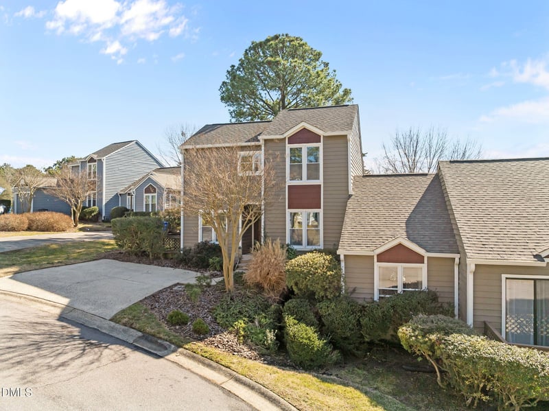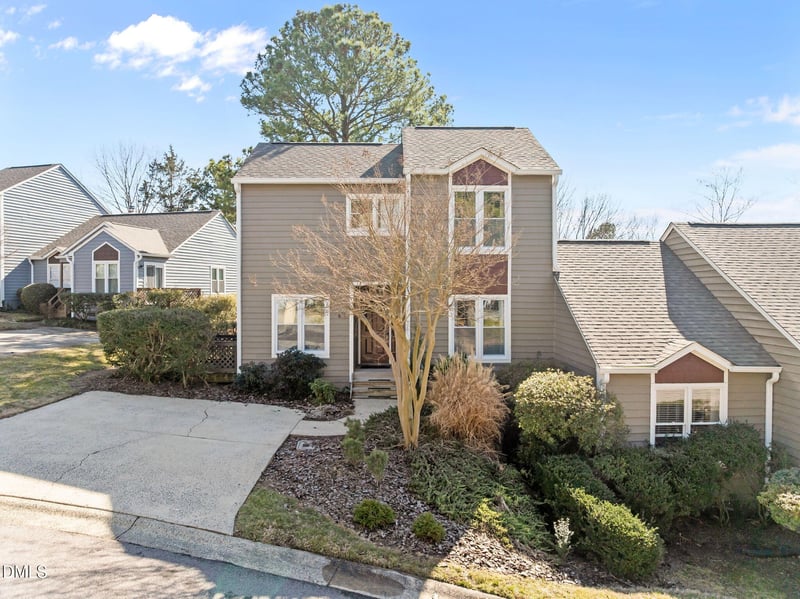 Listing details for 4 Applewood Sq, Durham, NC 27713 : Updated end-unit townhome in highly sought after Woodcroft (Durham 27713). This light-filled home features an updated kitchen with quartz countertops, tile backsplash, modern fixtures, and a breakfast nook that flows seamlessly onto a private patio. The first floor offers an open layout with soaring vaulted ceilings, abundant natural light, upgraded windows, fresh paint, and new carpet. The spacious family room includes a wood burning fireplace and overlooks a serene back deck and expansive backyard bordered by a wooded HOA buffer for added privacy. A versatile floor plan provides a 1st floor bedroom for a main level living option and two additional bedrooms upstairs, making it ideal for guests, home office space, or a variety of flexible living needs. This community is known for its miles of walking trails, convenient access to shopping and dining, and optional swim/tennis club membership. Ideally located in Southwest Durham with direct access to I-40, offering an easy commute to Raleigh, Durham, Chapel Hill, RTP, and RDU. Recent updates include: roof (2024), exterior paint (2024), windows (2026), new carpet, fresh paint in main living areas, & PEX plumbing.