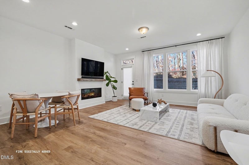 Listing details for 4019 Emerald Green Rd, Raleigh, NC 27612 : PRIME location in North Raleigh just minutes from I-440, UNC Rex, Wake Med, Crabtree Valley Mall, RDU Airport, Laurel Hills Park, shopping and dining. Modern end-unit townhome featuring an open floor plan filled with natural light. The main level offers a stylish kitchen with a gas range, stainless steel appliances, quartz counters, luxury vinyl plank flooring, and a sleek electric fireplace--perfect for entertaining. Upstairs includes three bedrooms and two flexible loft spaces ideal for an office, gym, or bonus area. The primary suite features a private balcony with wooded views. Finished garage includes an electric vehicle charging 240V outlet. Located in a top-rated Wake County school district. There's even a bike lane outside the community! Rentals are allowed in community per HOA manager.