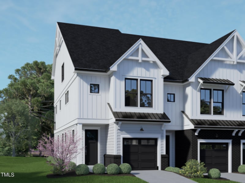 Listing details for 4025 Elk Creek Ln #23, Raleigh, NC 27612 : Beautiful New Construction townhome, Wade End unit. Farmhouse style with James Hardie siding, 3BR 3.5 BA in highly sought after neighborhood in Raleigh. Features include Bosch SS appliances, Granite in Kitchen and Silestone countertops in bathrooms, 42'' maple cabinet Gourmet Kitchen with gas cooktop, SS chimney vent and microwave/oven combo, Recessed private balcony off Primary Bedroom, Large tile walled frameless shower with 12'' seat bench & tile shower pan in Primary Bath, 7'' Luxury Vinyl plank throughout first floor, laundry and bathrooms. 9' Ceiling first and second floor, 6' windows on first and second, programmable WIFI capable thermostats, tankless water heater, ceiling fan prewire in family room and all bedrooms, rocker switches with matching square outlets and LED Disc lighting package in Primary, bedroom 2 & bedroom 3. 8' front door with glass insert, APRILAIRE whole house cleaner MERV 11 filtration system, fiber cement siding with ZIP system exterior sheathing and tape moisture barrier. Painted garage features an ultra quiet smart garage door opener with keypad and two openers and electric car outlet. Limited Interior selections can be chosen at the design center. All images are for example only.