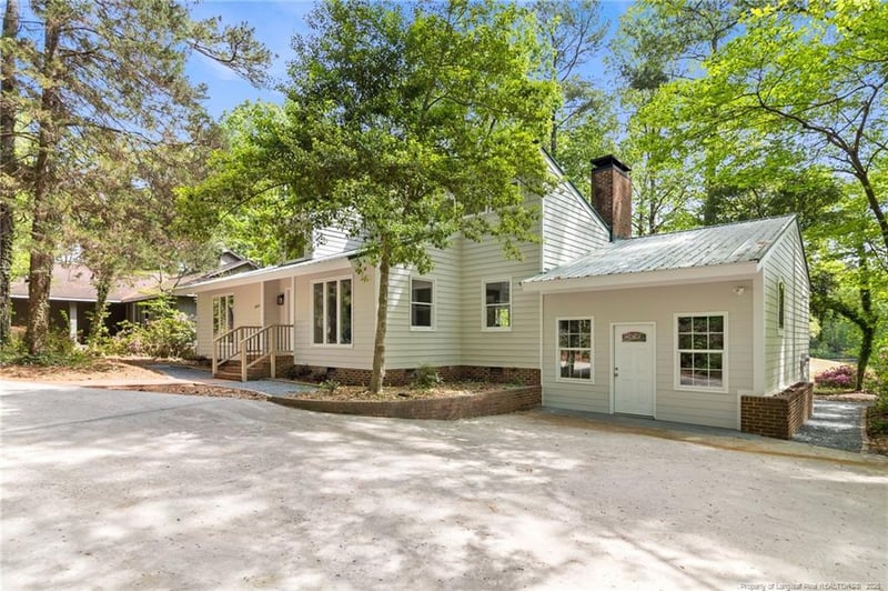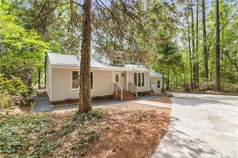 Listing details for 4041 Timber Wolf Cir, Sanford, NC 27332 : Welcome to lake life—bring your morning coffee and enjoy the beautiful views!Located in the desirable Laurel Thicket POA within the gated Carolina Trace community, this beautifully remodeled 3-bedroom, 3-bath home offers a setting that blends peaceful water and golf course views. Mature trees and natural landscaping provide a sense of privacy and seclusion while still being part of an established neighborhood.This home delivers both style and comfort with a metal roof, LVP flooring throughout, vaulted ceilings, and abundant natural light. The kitchen is thoughtfully designed with granite countertops and an open flow into the main living space—ideal for entertaining or everyday living.The heated and cooled sunroom (included in the total square footage) provides year-round enjoyment, while the expansive Trex deck, concrete patio, and additional paver-style patio create multiple outdoor living spaces—all overlooking the tranquil pond setting. A private walkway leads down to the water, offering a quiet retreat just steps from your door.
