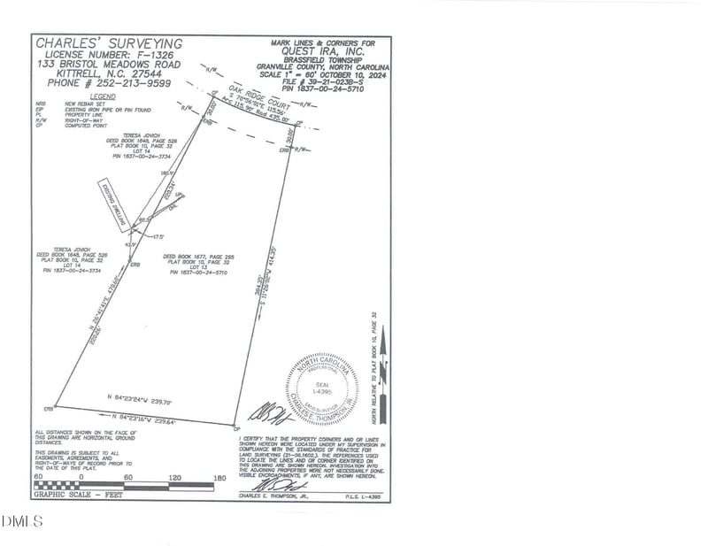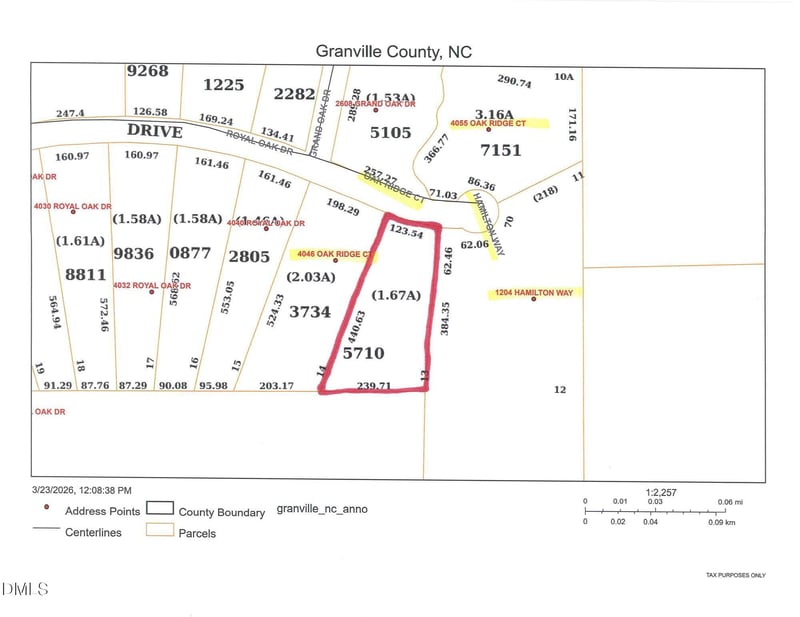 Listing details for 4050 Oak Ridge Ct, Franklinton, NC 27525 : $48K for 1.75 AC / Lot 13 near end of Cul-de-sac in Big Oak Farms Subdivision, on Royal Oak Drive In Granville Co (has Franklinton mailing address) near Tar Rover Elementary School. Per existing survey, around 115' of road frontage x 444' x 239' x 440'. Former encroaching buildings have been torn down & Seller in process of hauling off debris. Mainly wooded lot. Will need well and septic. Offers can be contingent upon Buyer getting a perk test as none have been completed. On gravel Road , privately maintained, No road maintenance agreement in place. Site Built home / Modulars / SINGLE WIDES & DOUBLE WIDES welcomed! CASH or pre qualification letter if getting bank loan.