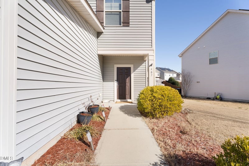 Listing details for 407 Kinnakeet Dr, Durham, NC 27704 : Updated 3-bedroom, 2.5-bath two-story home offering modern finishes and a smart, open layout — now priced below the 2024 purchase price, making it an exceptional value. The main level features luxury vinyl plank flooring, fresh paint, and a bright kitchen with ample cabinetry, tile backsplash, and a spacious breakfast bar opening to the living area. The primary suite includes tray ceilings, a walk-in closet, and an ensuite bath with dual vanities, soaking tub, and glass-enclosed shower. Upstairs offers comfortable secondary bedrooms and a dedicated laundry room. Enjoy outdoor living with a covered front porch and a private fenced backyard with patio, garden space, and fire pit. Conveniently located near Downtown Durham with easy access to I-85 and 885.