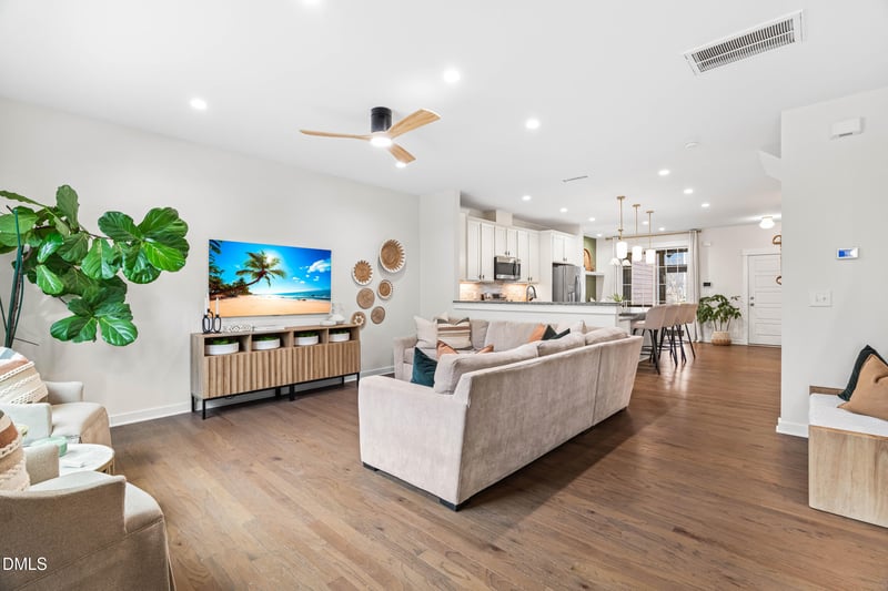 Listing details for 409 Triumph Ln, Wake Forest, NC 27587 : Don't miss this move-in-ready gem that perfectly blends modern style, functional design, and an unbeatable location. The first floor showcases beautiful wood floors that span throughout the open-concept living area, creating warmth and seamless flow. Newly installed recessed lighting, fresh paint and new carpet throughout the home add a crisp, refreshed look from top to bottom. The kitchen features an oversized island with bar seating—perfect for casual meals and entertaining—along with granite countertops, a stylish backsplash, updated fixtures, and a spacious pantry for ample storage. Also located on the first floor is a tastefully updated powder room and a converted private office, ideal for working from home, studying, or enjoying a quiet retreat. Upstairs, the spacious primary suite offers a true escape, complete with a private bathroom featuring a walk-in shower, dual vanity, and an impressive, HUGE walk-in closet. Additional bedrooms provide comfort and flexibility for family or guests. The home also boasts a third-floor loft with a terrace—an incredible bonus space perfect for a media room, playroom, fitness area, or additional lounge space with outdoor access. All of this PLUS a 1-car garage, screened in porch, and extended patio...this home has it all! Located just minutes from the rapidly growing and vibrant downtown Wake Forest, you'll enjoy convenient access to local restaurants, breweries, shops, and parks. With stylish updates, versatile living spaces, and prime proximity to one of the Triangle's most sought-after downtown districts, this home wont last long!