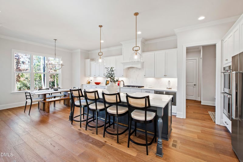 Listing details for 4104 Green Chase Way, Apex, NC 27539 : Beautifully designed and impeccably maintained, this like-new residence offers refined living in one of Apex's most desirable locations, just minutes from Cary's premier shopping, dining, and amenities, with easy access to major highways. Modern architecture and thoughtful upgrades create a polished yet inviting atmosphere throughout the home. The natural lighting in this home is stunning- you have to see to believe! The main living area features custom built-ins and flows seamlessly into a gourmet kitchen designed for both everyday living and elevated entertaining. High-end finishes, generous storage, and a clean, modern aesthetic make this space as functional as it is beautiful. A screened-in porch extends the living space and provides a private retreat overlooking the outdoors. A main-level guest suite with a full bath offers exceptional flexibility for guests or multi-generational living. Upstairs, each bedroom is thoughtfully designed as a private suite, complete with its own full bath and walk-in closet. A spacious third-floor bonus room adds another layer of versatility, ideal for a media room, home office, or additional living space. Set in a prime Apex location near Cary, Raleigh, and RTP, this move-in ready home blends modern luxury, flexible living spaces, and an exceptional setting. A rare opportunity for buyers seeking elevated design, convenience, and a home that feels both sophisticated and cozy.