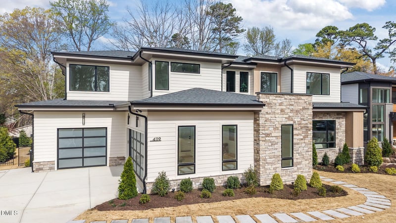 Listing details for 4119 Rockingham Dr, Raleigh, NC 27609 : Located in a coveted location, just a short walk to North Hills and all it has to offer. Built by award winning Stellar Blu Construction - featuring 5 beds, 6.5 baths and a luxurious infinity edge salt water pool complete with a pool bath and storage area. 4,743 square feet of meticulously designed space with the main level offering a convenient owner's suite and dedicated guest with full bath. Wide plank hardwoods span throughout the first floor with 10-foot ceilings, designer lighting, elegant finishes and upgraded trim details. The gourmet kitchen offers an oversized quartz island, a floating reverse trey ceiling with hanging pendants, maple ebony stained ceiling height cabinetry, Thermador appliances including a 6-burner 48'' gas range, french door refrigerator, microwave drawer and wall oven, quartz countertops and backsplash and a huge prep kitchen/scullery with stained cabinetry and quartz countertops. All opening to the vaulted sun-lit dining area with sliding glass doors to the rear screened porch. The private owner's suite with wide plank hardwoods, a trey ceiling, custom trimmed accent wall and and spa-style en-suite bath with luxurious zero entry shower with tile surround and bench seat, a floating dual vanity with quartz top, deep freestanding tub with mounted tub filler and massive walk-in closet with dressing island and convenient access to the laundry room! The family room is anchored by a linear fireplace with flanking custom built-in cabinets and glass sliding doors to the outdoor living retreat with a screened porch with outdoor stone surround fireplace and phantom screens and access to the grilling deck --all overlooking tranquil pool views. Upstairs, features a recreational room with built-in bar area and wine/beverage fridge, media room with tech closet, a private study, play room for entertaining, spacious secondary en-suites and tons of unfinished walk-in storage! Complete with a 3-car garage with epoxy flooring, upgraded Pella exterior windows, tankless water heater and so much more! This home is the perfect blend of luxury and functionality.