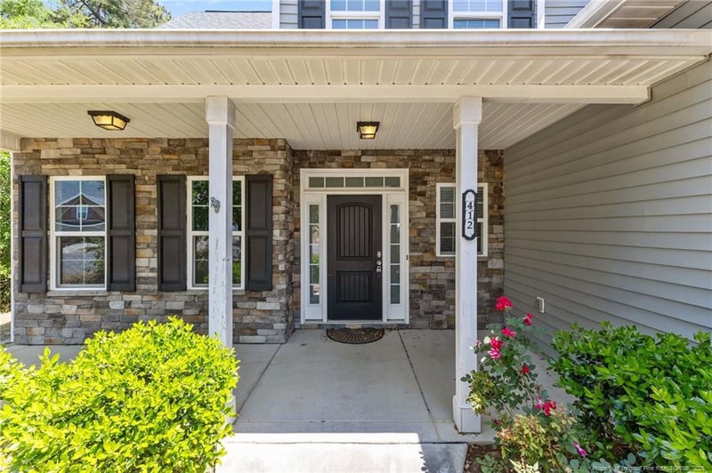 Listing details for 412 Sedgemoor Rd, Fayetteville, NC 28311 : Welcome to this beautiful home situated behind the Nottinghill gates in the Kings Grant Golf & Country Club. Not only are the sellers motivated, they are offering $5,000 use as you choose, providing a home warranty of buyer's choice AND the home is located on a cul de-sac! Featuring 4-bedrooms, 3.5-baths, formal dining/office 2 car garage and fully fenced yard. With ample storage throughout, the living room is plenty spacious and cozy with a gas fireplace. The kitchen boasts SS appliances, plenty of cabinet/counter space, gas range, pantry and dining nook. The primary is located on the main floor, providing privacy and ease with a wonderful en-suite showcasing dual vanity, a stand-up shower, closet toilet and WIC. Additionally on the main floor is a half bath, walk in laundry room and a dedicated formal dining, office or flex space with french doors. On the 2nd floor there is a bedroom with its own bathroom, making for the perfect bedroom, guestroom or mother in law suite. 2 extra generous size bedrooms and a full bathroom with dual vanity, separate shower and toilet. The back yard is fully fenced in with a peaceful screened in patio. Don't like lawn care? No worries...the HOA maintains your lawn care, as well as walking trails, pavilion, golf/social membership and restaurant & bar. Conveniently located minutes to shopping/dining/I295 and Fort Bragg offering comfort and convenience. Schedule your showing today!