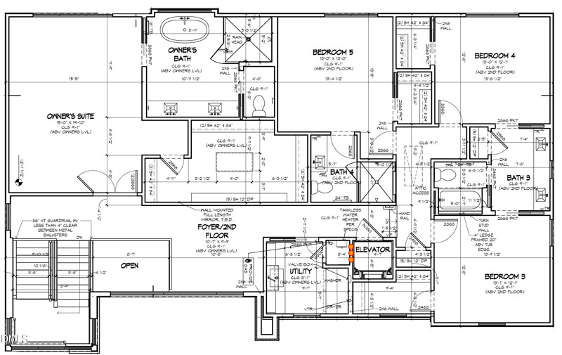 The second floor primary suite with hardwoods, massive walk-in closet and luxurious en-suite bath with spa-style zero entry shower with frameless glass, freestanding tub and floating dual vanity with vessel sinks.