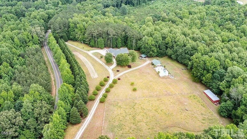 Listing details for 413 Johnson Town Rd, Zebulon, NC 27597 : Absolutely gorgeous Log and Craftsman style home on 7.67 large acreage parcel with a detached Pool House. Why leave home when you have your own private oasis, inground pool, and waterslide-perfect for hot summer days and cooling down. Each bedroom in this home has its own bathroom. Two possible master bedrooms, one with wider doors and handicap capable access. The log construction offers warm wood accents and unique features like double sided fireplace and a front porch bed swing help set this stunning home apart from nearby new construction. Vaulted ceilings, stone fireplaces, loft office, built in unique sinks and fixtures, built in generator, and tack barn and fence for horses are some of the many features that make it different from all others. A private retreat, a possible horse farm, a pool party and guest house, all make this home the perfect place to live and entertain. Check out the additional lots and Barns, listed separately, that could be added to make your equestrian dreams come true! A total of 7.67 out of the total 34.67 acres for sale in separate proposed tracts.