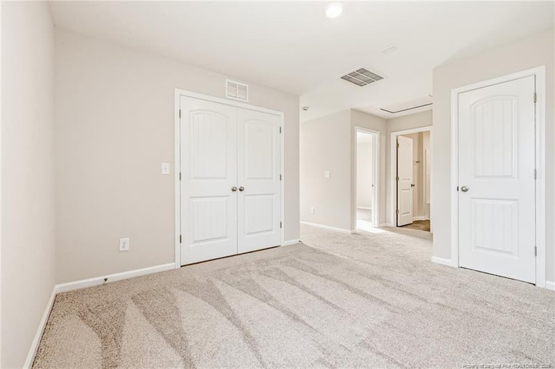 Listing details for 416 Black Duck Ln, Lillington, NC 27546 : $10,000 incentive with preferred lender-Must close by May 31, 2026. The Hinton floor plan with 3BR & 2.5 baths is situated on a .45 acre lot with a deck and pond views, this home welcomes you with a charming covered front porch and a bright, open great room. The kitchen showcases shaker cabinets, granite countertops, a large island with sink, stainless steel appliances, and a pocket office, all flowing into a bright dining area with backyard views. From the dining space, step out onto the grill patio—perfect for outdoor dining or relaxing. A coat closet and convenient half bath are located near the garage entry, completing the main floor. Upstairs, all bedrooms are thoughtfully placed for privacy and comfort. A generous loft/bonus offers flexible space for a media room, playroom, or study. The laundry room is conveniently located just off the loft for easy access. The private primary suite features a tray ceiling and an en-suite bath with dual vanity, walk-in shower, linen closet & access to the spacious walk-in closet.Two additional bedrooms share a full hall bath with a vanity & tub/shower combo. Exterior highlights include low-maintenance vinyl siding, dimensional roof shingles, smart keypad entry, and a 1-car garage. Additional features include fiber optic internet availability, Energy Plus certification, and a 1-2-10 builder in-house warranty. Duck's Landing is a charming community in the peaceful countryside of Lillington, NC, featuring planned amenities like a tot lot, dog ark and picnic area, all with convenient access to Lillington, Fort Bragg(20 min.), Raleigh, and Fayetteville.