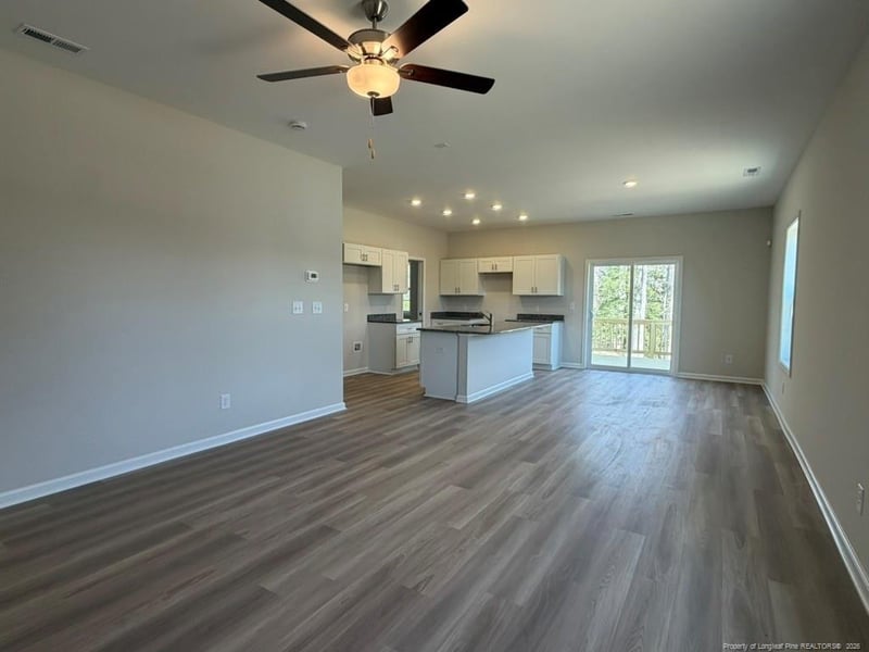 Listing details for 416 Black Duck Ln, Lillington, NC 27546 : $10,000 incentive with preferred lender-Must close by May 31, 2026. The Hinton floor plan with 3BR & 2.5 baths is situated on a .45 acre lot with a deck and pond views, this home welcomes you with a charming covered front porch and a bright, open great room. The kitchen showcases shaker cabinets, granite countertops, a large island with sink, stainless steel appliances, and a pocket office, all flowing into a bright dining area with backyard views. From the dining space, step out onto the grill patio—perfect for outdoor dining or relaxing. A coat closet and convenient half bath are located near the garage entry, completing the main floor. Upstairs, all bedrooms are thoughtfully placed for privacy and comfort. A generous loft/bonus offers flexible space for a media room, playroom, or study. The laundry room is conveniently located just off the loft for easy access. The private primary suite features a tray ceiling and an en-suite bath with dual vanity, walk-in shower, linen closet & access to the spacious walk-in closet.Two additional bedrooms share a full hall bath with a vanity & tub/shower combo. Exterior highlights include low-maintenance vinyl siding, dimensional roof shingles, smart keypad entry, and a 1-car garage. Additional features include fiber optic internet availability, Energy Plus certification, and a 1-2-10 builder in-house warranty. Duck's Landing is a charming community in the peaceful countryside of Lillington, NC, featuring planned amenities like a tot lot, dog ark and picnic area, all with convenient access to Lillington, Fort Bragg(20 min.), Raleigh, and Fayetteville.