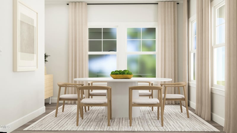 Listing details for 4210 Gray Alder Ln, Raleigh, NC 27616 : This new two-story home offers generous living space with a thoughtfully designed layout. The first floor features an open-concept design connecting the living room, breakfast area, and kitchen, creating an ideal space for everyday living and entertaining. A formal dining room near the entry and a covered back patio provide additional gathering options. A versatile first-floor bedroom is perfect for guests or a home office.