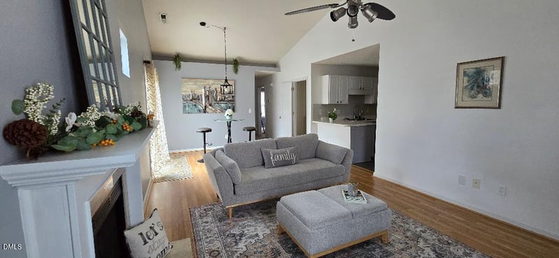 Listing details for 4225 Lake Woodard Dr, Raleigh, NC 27604 : PRICE JUST REDUCED! SELLER MOTIVATED. This home now offers even MORE value. fantastic opportunity for this well-maintained home with no down payment and no PMI! This single-story 2-bedroom, 2 bath stunner just outside the Beltline Set in a quiet, community with easy access to shopping, dining, and schools nestled on a quiet corner lot, and fully fenced yard. Enjoy outdoor living on your private side patio and back yard -- ideal for BBQs, relaxing, or letting pets roam. This home offers the perfect blend of suburban comfort and city connection. Enjoy the ease of single-level living in this tastefully updated ranch featuring soaring cathedral ceilings, abundant natural light, and comfortable living spaces. Cozy up by the fireplace in the spacious living room, perfect for relaxing evenings. Major updates include a new roof (2021) and water heater (2023) This home offers privacy and low-maintenance living. The single-car garage provides valuable extra space for parking, storage, or hobbies. Don't miss this incredible opportunity -- motivated seller!