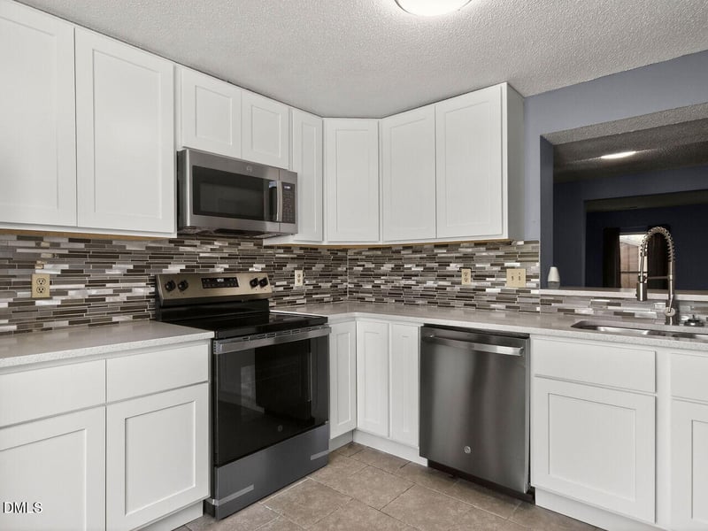 Listing details for 4333 Halliwell Dr, Raleigh, NC 27606 : Remodeled and move-in ready end unit in Raleigh--priced under $300K! Located near Raleigh, close to NCSU with convenient Wolfline bus service. This 3BR/2.5BA home features new carpet, LVP flooring on the main level, and updated lighting and plumbing fixtures throughout. Bright kitchen with white cabinets/drawers, quartz countertops, tile backsplash, upgraded faucet, Lazy Susan, and brand-new stainless steel appliances including flat-top range with steam-clean feature. Laundry in kitchen with new washer/dryer that convey. Primary bath updated with new tile. Nest thermostat. Two assigned parking spaces. HVAC approx. 2 years old; water heater approx. 5 years old.