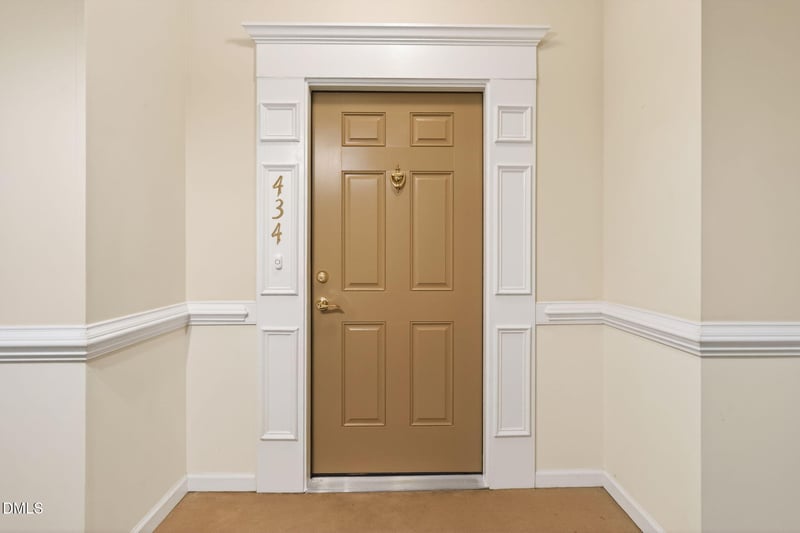 Listing details for 434 Eyam Hall Ln, Apex, NC 27502 : Welcome to this beautifully maintained, top-floor 2-bedroom, 2-bath condo at Haddon Hall. With 1,345 square feet, this freshly painted open floor plan features a cozy fireplace and seamless flow—perfect for both everyday living and entertaining. Enjoy peaceful mornings and relaxing evenings on the third-floor balcony, overlooking a wooded area that provides exceptional privacy and tranquility. The building offers a secure entry door and elevator access, making top-floor penthouse living both convenient and accessible. This home is centrally located, within a mile of shopping, dining, the WakeMed Briar Creek Healthplex, with ready access to freeways offering unbeatable convenience. Community amenities include a pool, tennis/pickleball courts, clubhouse, greenways, and a scenic walking trail around the lake—ideal for an active lifestyle or quiet strolls. Additional features include an assigned parking space in a lighted garage, ample guest parking, and a locked storage closet in the basement. The washer, dryer, and refrigerator convey. The HVAC system was replaced just four years ago. HOA dues cover water, trash, cable, and internet, delivering outstanding value in a sought-after community. This move-in-ready condo combines comfort, convenience, and natural beauty—don't miss it.